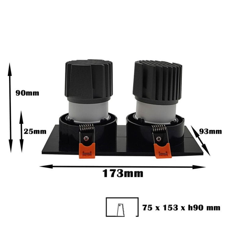 Downlight LED 30W – Direccionable – NEGRO Doble – CRI+92 – UGR13