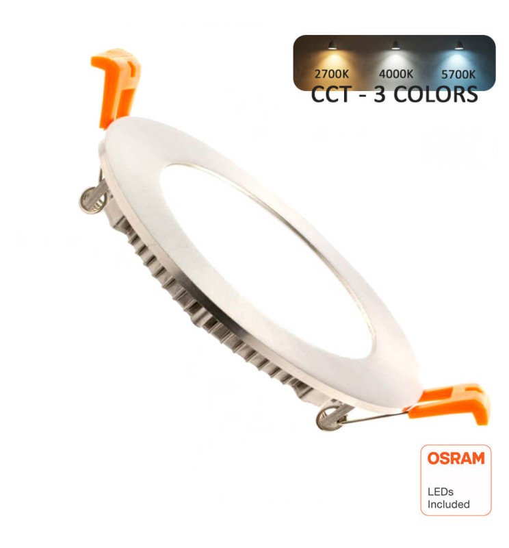 Slim Round LED Panel 10W Acier inoxydable - CCT - OSRAM CHIP DURIS E 2835