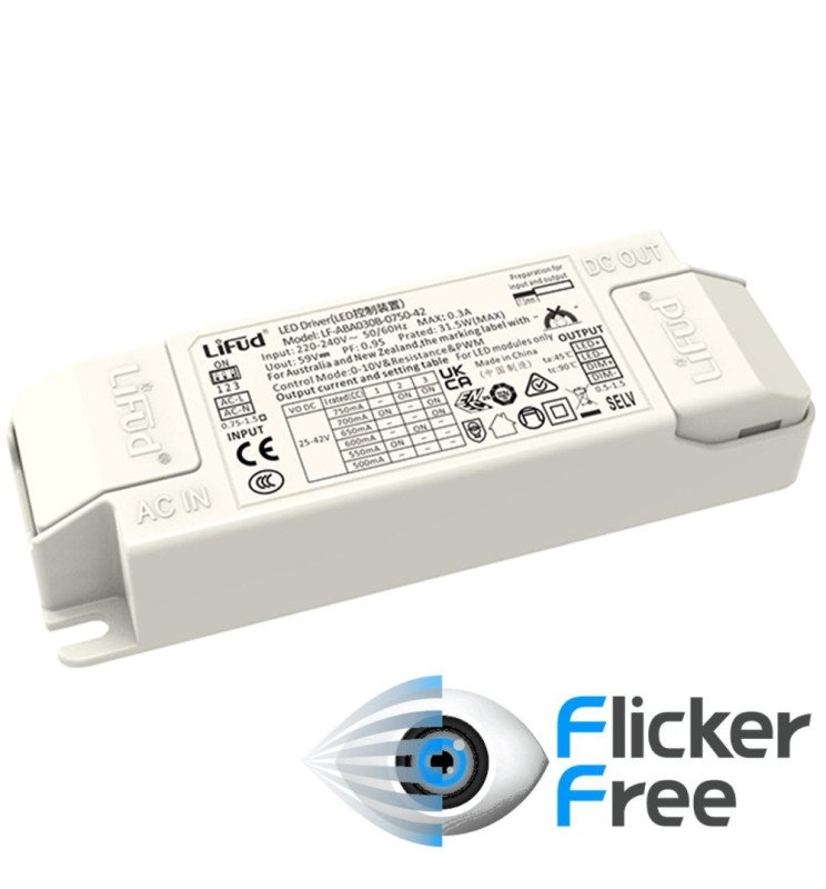Driver Lifud – Dimable 0-10V – Para luminarias LED de hasta 30W – No Flick – Salida 25-42V DC 500-750mA
