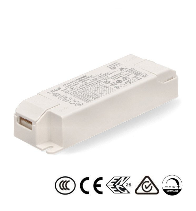 Driver LIFUD Regulable 0-10V para LED hasta 40W, Optimiza tus luminarias con este driver sin flicker, ideal para Downlights, Paneles y Plafones LED. Con entrada AC220-240V y salida regulable DC25-42V (800-1050mA), ofrece un rendimiento estable y compatible con múltiples aplicaciones gracias a su diseño sin conectores de salida.