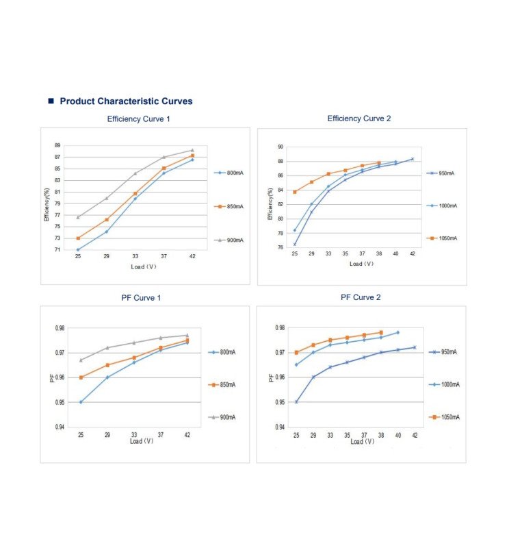 Una de sus grandes ventajas es que cuenta con salida multitensión: puede entregar una tensión constante dentro de un rango de 25 a 42V DC, adaptándose automáticamente a la carga conectada. Esto significa que el driver es capaz de operar con diferentes configuraciones de corriente (de 800 a 1050 mA), haciendo que un solo modelo sea apto para una variedad de aplicaciones. Una vez alimentado, el sistema ajusta la salida de forma automática y mantiene constante la tensión dentro del rango especificado.