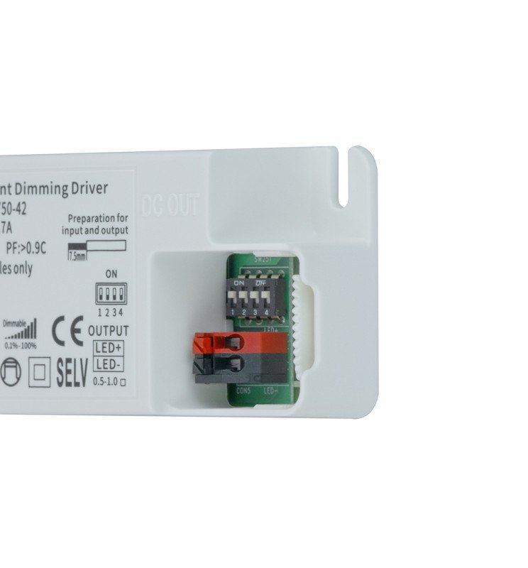 Una de sus grandes ventajas es que cuenta con salida multitensión: puede entregar una tensión constante dentro de un rango de 9 a 42V DC, adaptándose automáticamente a la carga conectada. Esto significa que el driver es capaz de operar con diferentes configuraciones de corriente (de 400 a 750 mA), haciendo que un solo modelo sea apto para una variedad de aplicaciones. Una vez alimentado, el sistema ajusta la salida de forma automática y mantiene constante la tensión dentro del rango especificado.