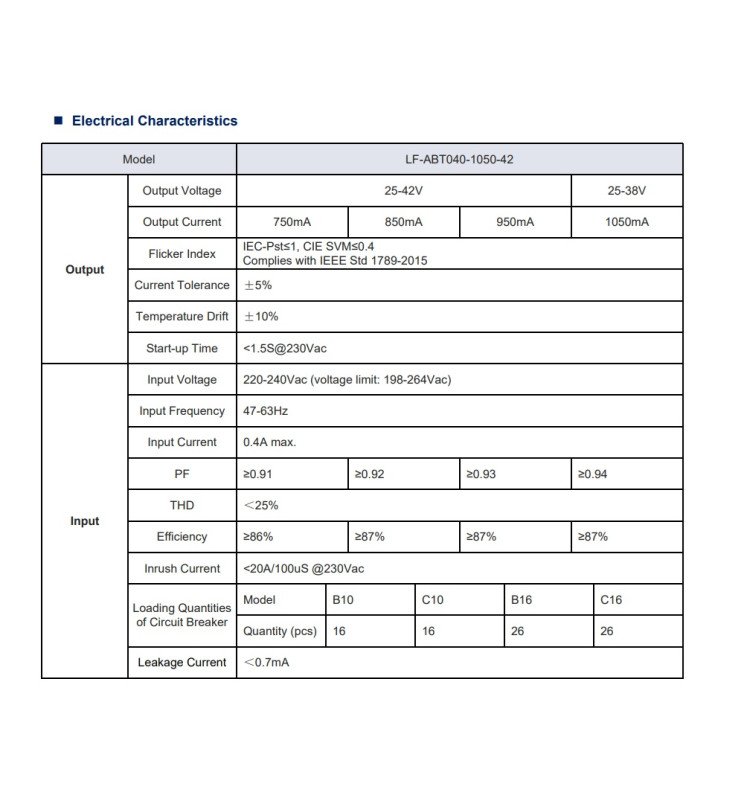 Input: AC220-240V / Output: DC25-42V 750mA-1050mA
