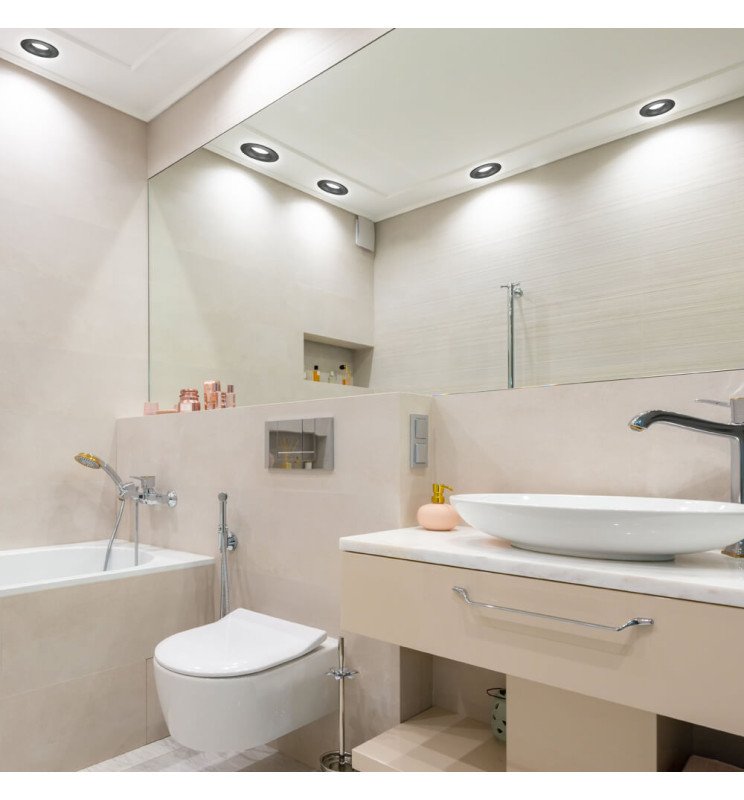 - Baños y duchas: Gracias a su protección IP65 contra la humedad y el agua, es ideal para instalar en techos de baños, cerca de lavabos o duchas.