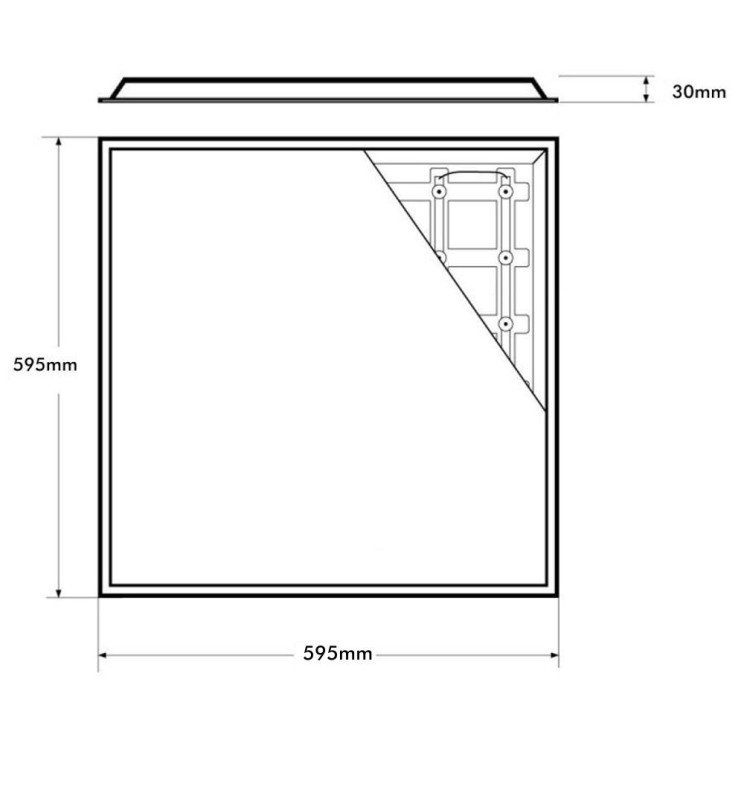 este panel incorpora leds smd2835 de alta luminosidad, ofreciendo una luz homogénea y potente en toda su superficie. sus medidas estándar (595 x 595 mm) y su altura reducida (30 mm) lo hacen versátil y discreto.