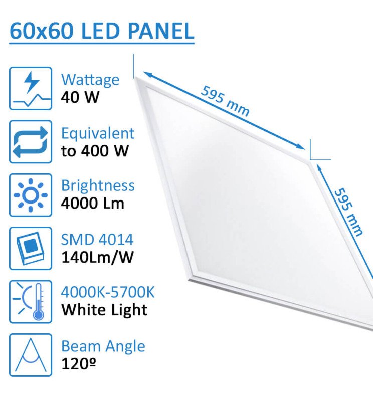eleva tus espacios con el nuevo panel led 60×60 de 40w con driver y marco ultra delgado (slim frame), diseñado bajo los más altos estándares de calidad. esta solución de iluminación combina diseño estético, eficiencia energética y durabilidad, convirtiéndose en la opción ideal para instalaciones profesionales y exigentes en techos desmontables.
