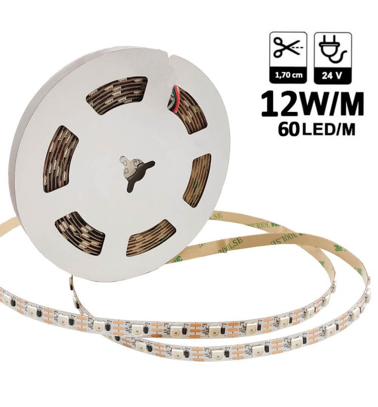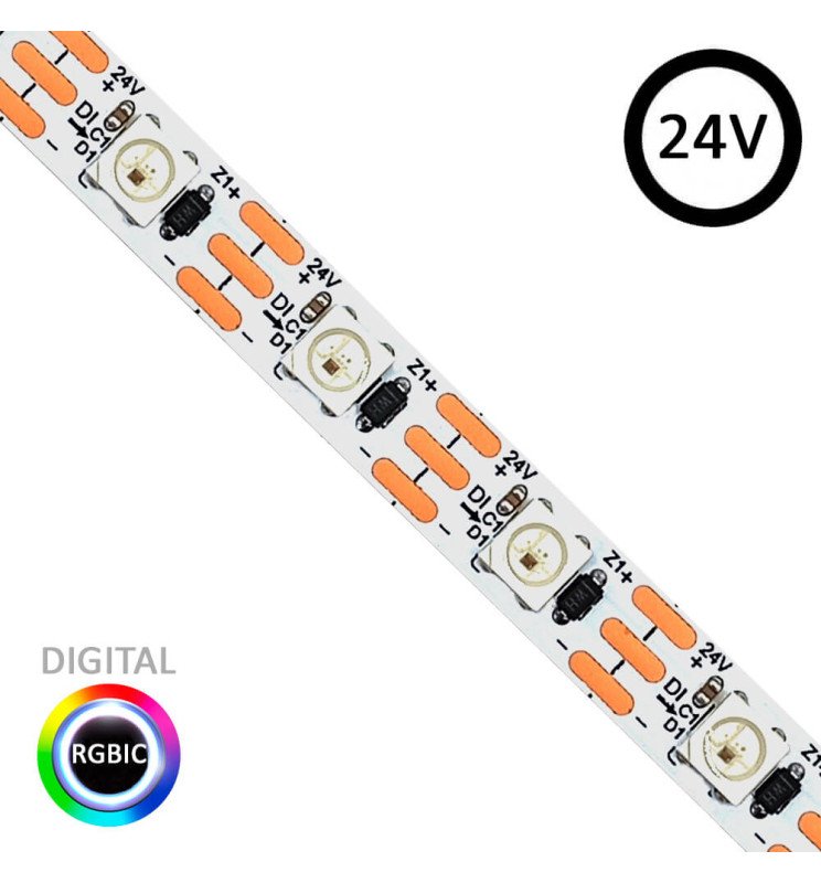Tira LED 24V RGBIC | SMD5050 DIGITAL | 5 Metros | 60LED/m | 12W/M | IP20