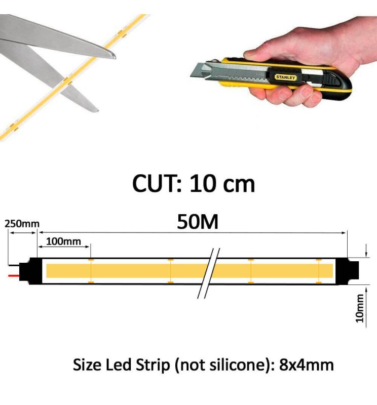 No requiere fuente de alimentación externa ni cable rectificador, simplificando su instalación. Su adhesivo térmico permite una fijación segura que responde al calor generado por la propia tira. Además, el corte cada 10 cm y su ancho de 10 mm ofrecen flexibilidad total, permitiendo adaptarla a cualquier espacio o proyecto personalizado.