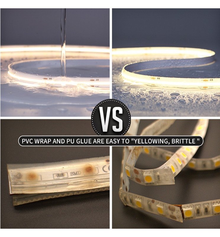 Fabricada en silicona de alta calidad con protección IP67, la tira es resistente al polvo y a la humedad, lo que la hace adecuada tanto para interiores como exteriores. Es ideal para zonas húmedas como cocinas, baños, fachadas, jardines o terrazas.