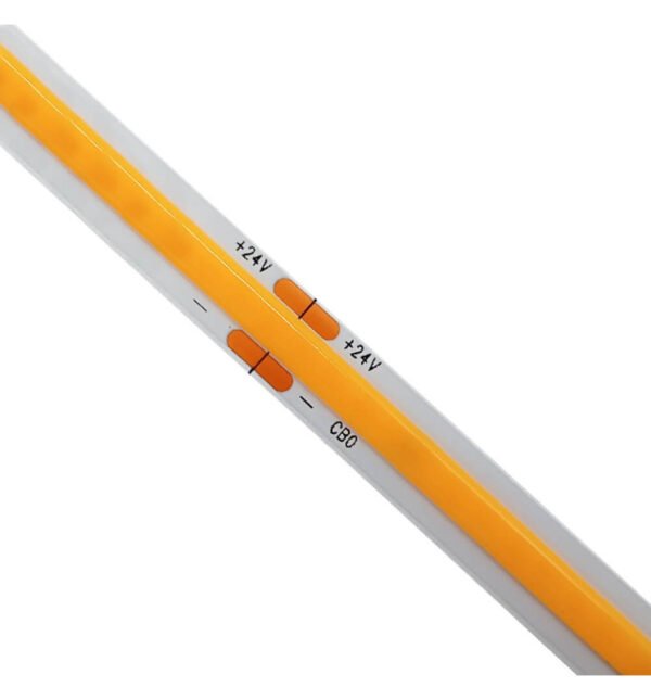 Nuestra tira LED COB 24 Voltios 12W es autoadhesiva para facilitar su instalación. La tira LED requiere de una fuente de alimentación de corriente continua de corriente constante (DC) para alimentarla. Las tiras LED se pueden regular la intensidad (-Dimmables-).